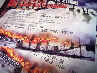 ■2006.08.19 B'z LIVE-GYM 2006 MONSTER'S GARAGE ナゴヤドーム アリーナA10列目 過去最良席!!