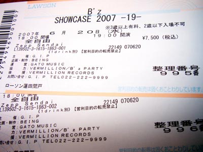 ■2007.06.21 B'z SHOWCASE -19- Zepp Tokyo 幸運にもチケットGET!これは会社なんて行ってる場合じゃない♪ これはもう運を使いすぎたかな・・・・?ってプレミアライブの時も言ってたな!