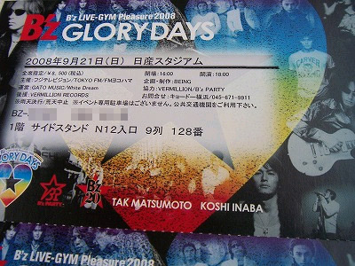 ■2008.09.20 B'z LIVE-GYM Pleasure 2008 -GLORY DAYS- 日産スタジアム ヤフオクでペア1万だったから急遽参戦決定 久々のプレジャーもいいね♪